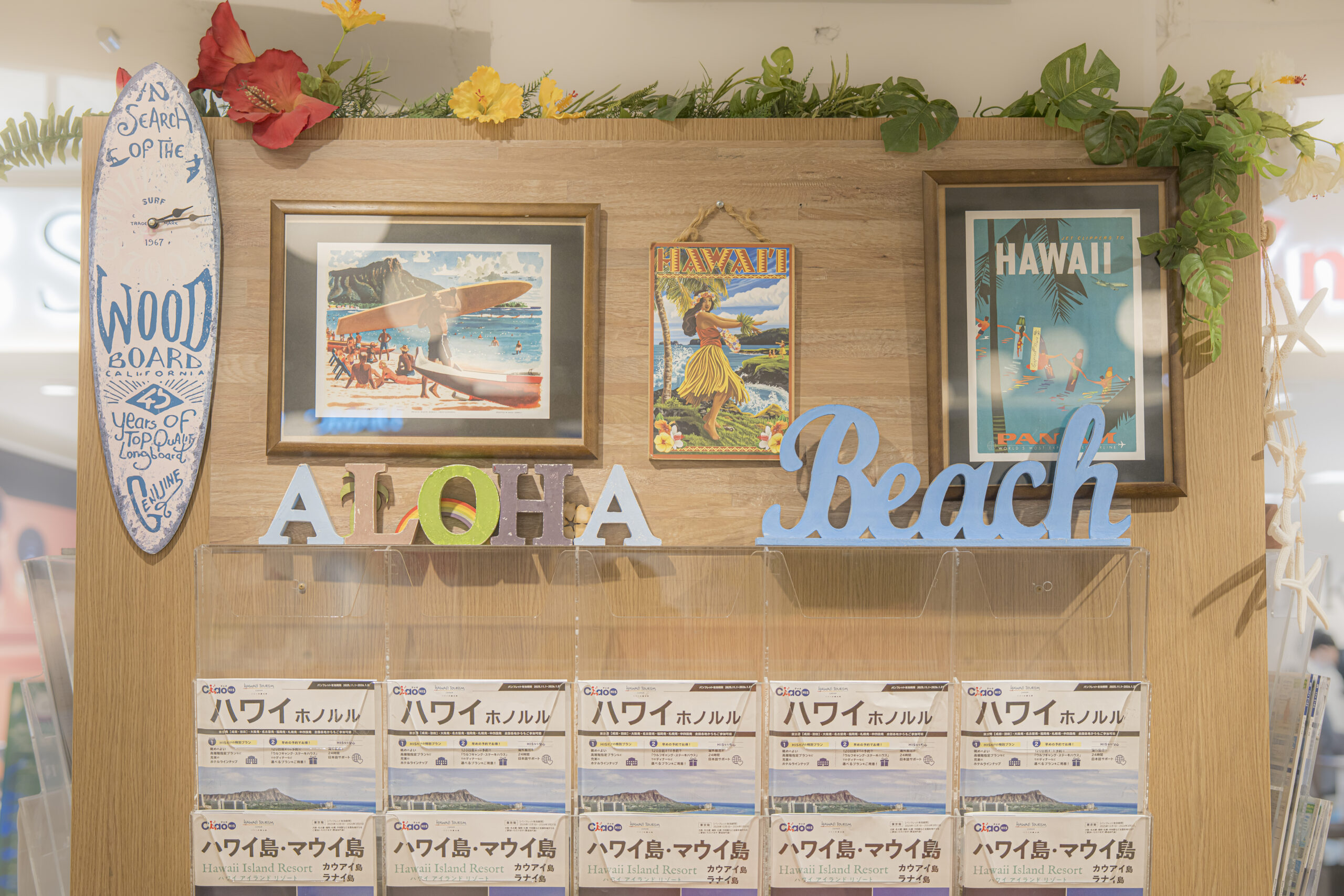 ハワイ州観光局認定サテライトオフィス1号店。ハワイ州観光局アロハプログラム上級スペシャリストが常駐しています。オールドハワイをイメージした、ハワイアンミュージックの流れる店内で、ハワイに一番近い日本をご体感ください。